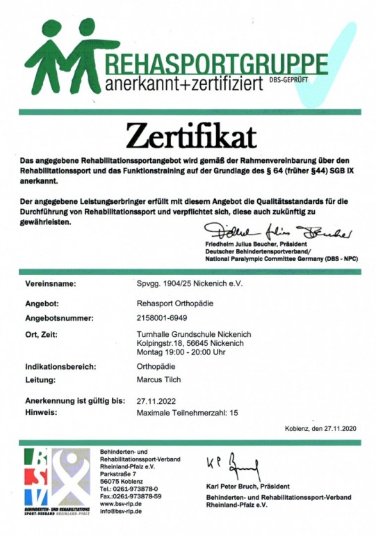 Seit dem 20.08.2020 ist die Spvgg Nickenich Mitglied des Behinderten- und Rehabilitationssport Verbandes Rheinland-Pfalz e.V.