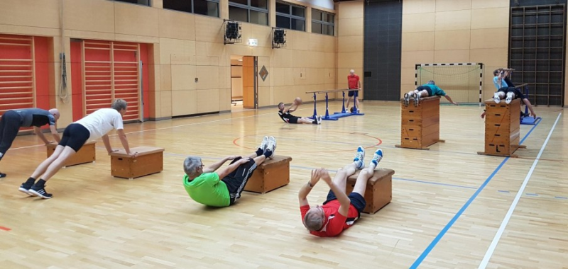 Zirkeltraining ist in der Männer-Gymnastik-Gruppe immer eine attraktive Alternative in der Übungsstunde am Dienstag. Das Training ist abwechslungsreich, es vereint funktionelle Kräftigungsübungen, Coretraining und sensomotorisches Training.